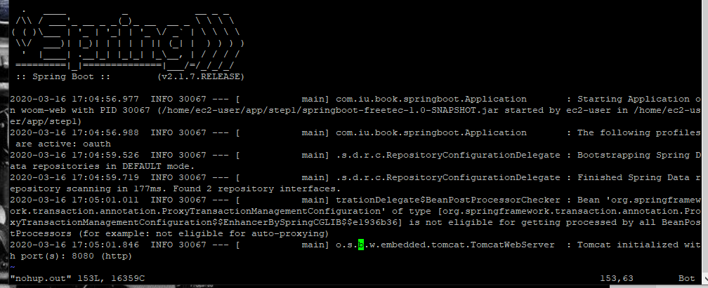 nohup.out을 쭉 내려서 확인했어야 됐는데.. 그걸 확인하지 못했다.