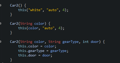 생성자에서 다른 생성자를 호출 할 수 있다.