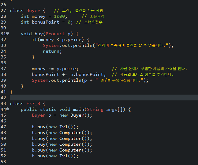 부모클래스 변수 = new 자식클래스의 인스턴스