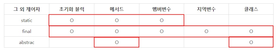 접근 제어자 / 그 외 제어자 로 나뉜다.