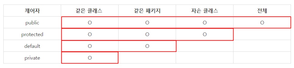 접근 제한자를 사용하여 캡슐화된 멤버를 노출할지, 숨길지를 결정할 수 있다.