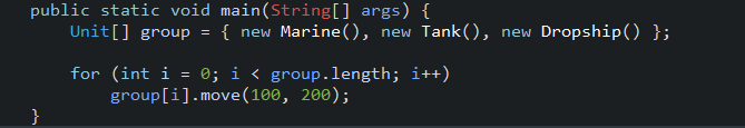 위 사진처럼 클래스간의 공통 부모가 없었다면 이처럼 하나의 배열로 다룰 수 없었을 것이다.