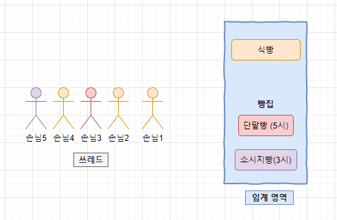 wait과 notify는 빵집 앞에 빵을 사려고 대기하는 사람들로 설명할 수 있다.