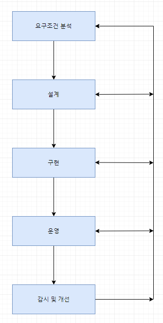 : 생명 주기의 어떤 단계에서 일단 문제가 발생하면 그 피드백을 받아 그 앞의 적절한 단계로 되돌아가 그 단계에서부터 다시 계속하게 된다.