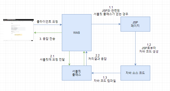 jsp를 실행한다는 말은 곧 jsp 페이지를 컴파일한 결과인 서블릿 클래스를 실행한다는 의미가 된다.