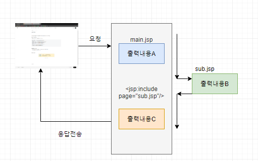 - include만나서 sub.jsp 이동 B내용 출력 버퍼에 저장