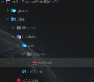 생성하면 idea/modules/web/WEB-INF/ 생성된다.