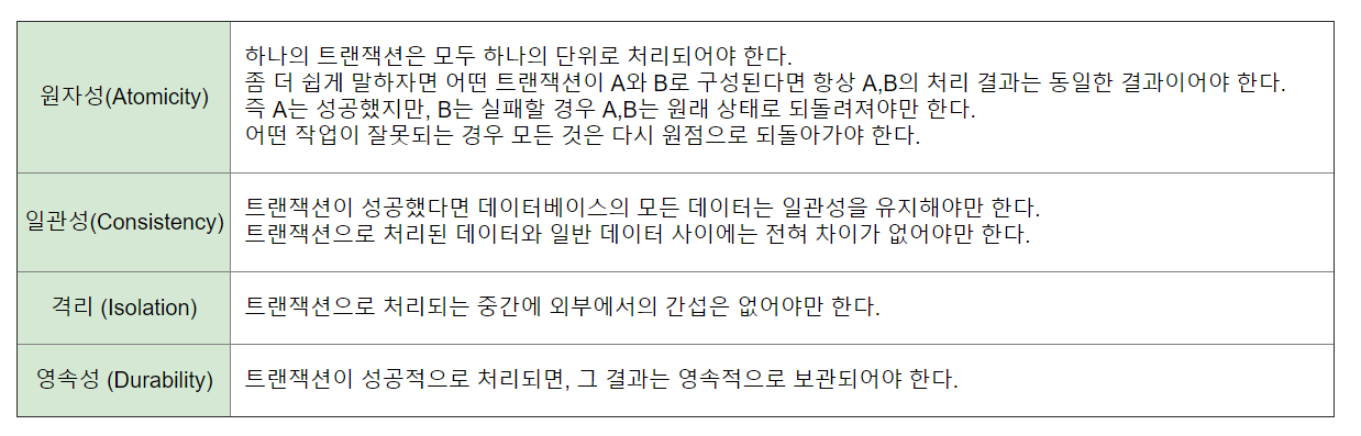 데이터베이스의 정규화가 잘 되어있거나 규칙들이 잘 반영된 데이터베이스의 설계에서는 '트랜잭션'이 많이 일어나지 않는다. 정규화가 진행될수록 테이블은 점점 더 순수한 형태가 되어가는데, 순수한 형태가 될수록 '트랜잭션 처리'의 대상에서 멀어진다.
