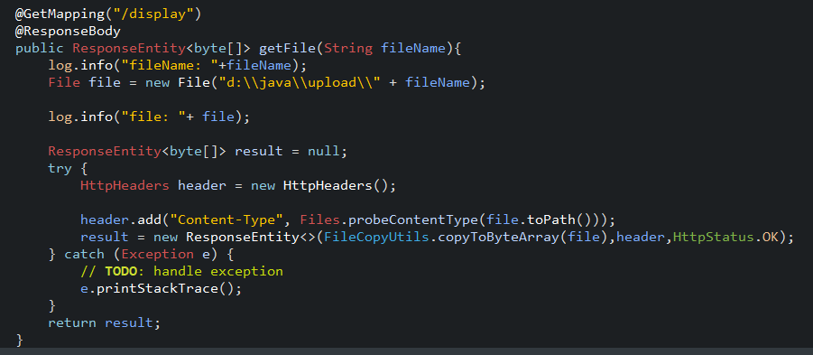 파일 처리는 스프링에서 제공하는 MultipartFile이라는 타입을 이용한다.