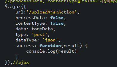 이때 프로세스데이타와 컨텐트타입은 반드시 false로 지정해야만 전송되므로 주의!