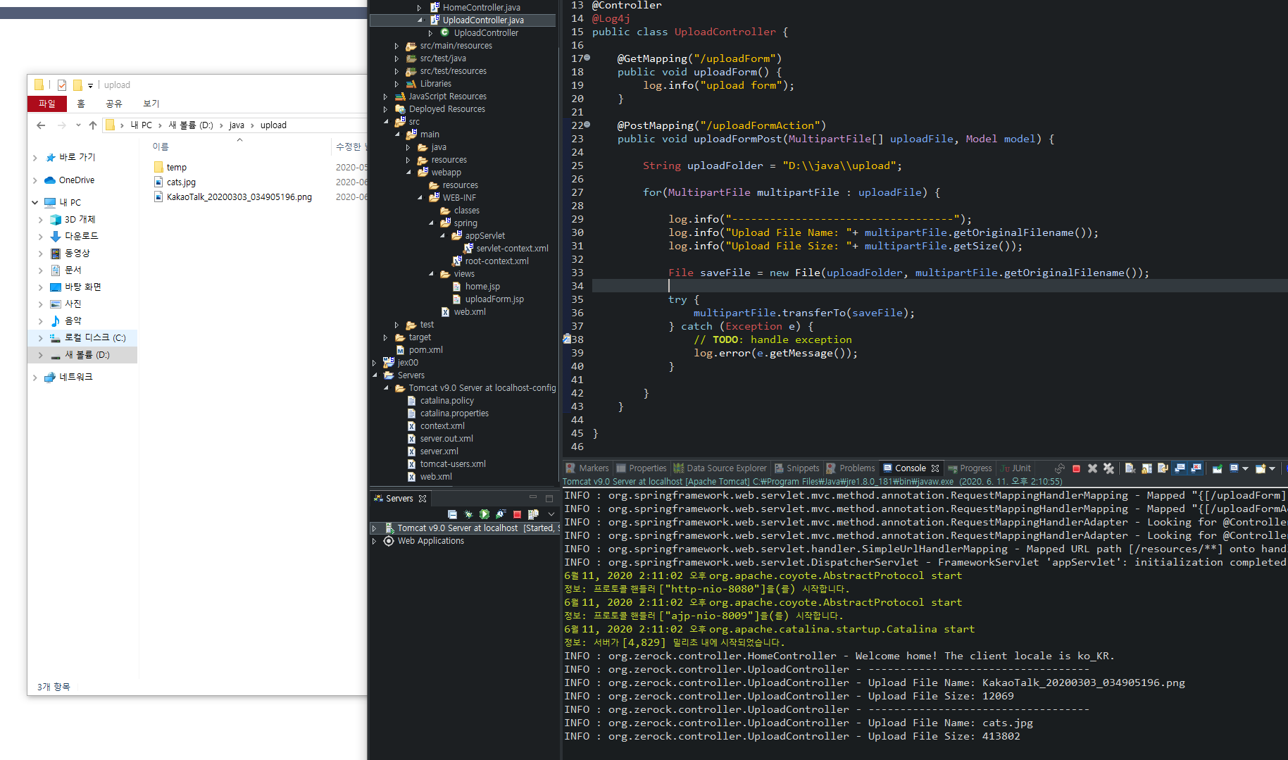 화면에서 여러개의 파일을 선택할 수 잇으므로 배열 타입으로 설정한 후 파일 업로드를 해보자.