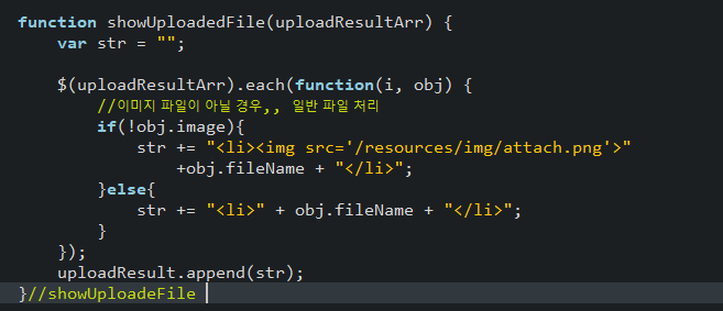 현재 업로드는 <input type='file'>을 통해서 이루어지기 때문에 한 번 업로드가 끝난 후에는 이를 초기화 시켜주는 작업과 업로드된 결과를 화면에 반영해 줄 필요가 있다.