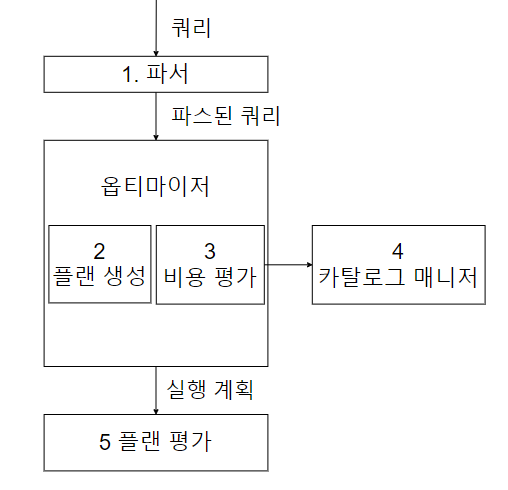 옵티마이저는 인덱스 유무, 데이터 분산 또는 편향 정도 DBMS 내부 매개변수 등의 조건을 고려해서, 선택 가능한 많은 실행 계획을 작성하고(플랜생성), 이들의 비용을 연산하고(비용평가), 가장 낮은 비용을 가진 실행 계획을 선택한다.