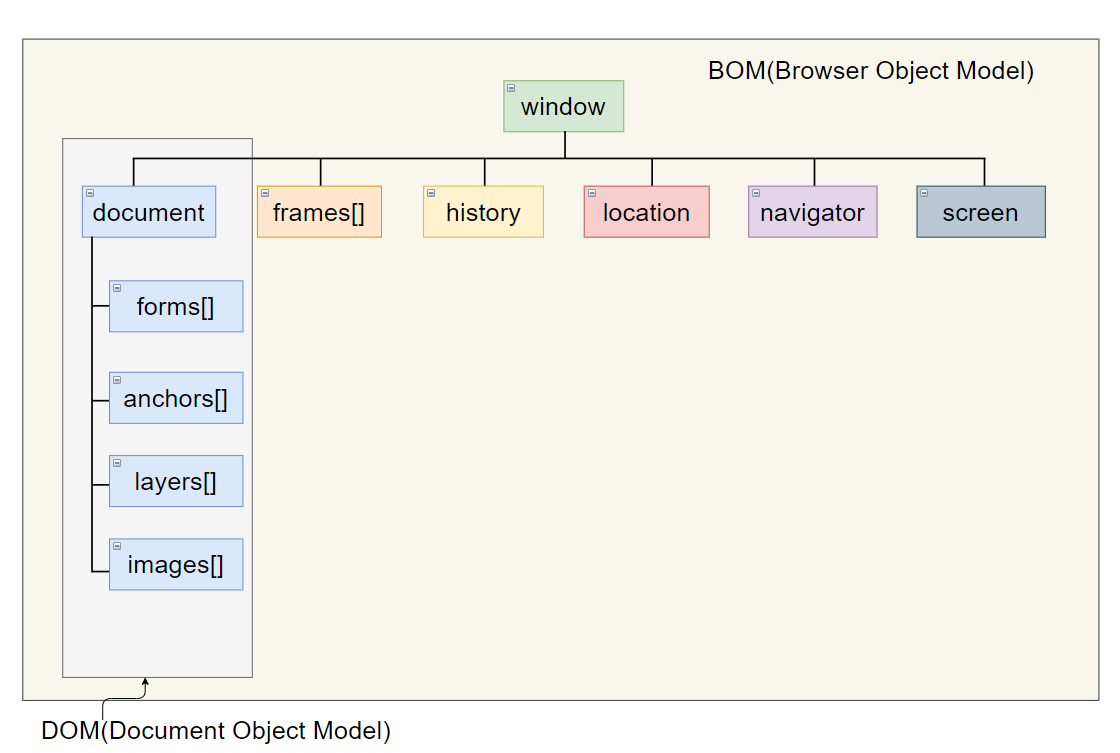 브라우저에 있는 모든 것이 객체로 표현되어 있기 때문에 자바스크립트에서는 객체의 속성을 변경하고 객체의 메서드를 호출해주면 웹 브라우저에 대한 거의 모든 것을 제어할 수 있다.