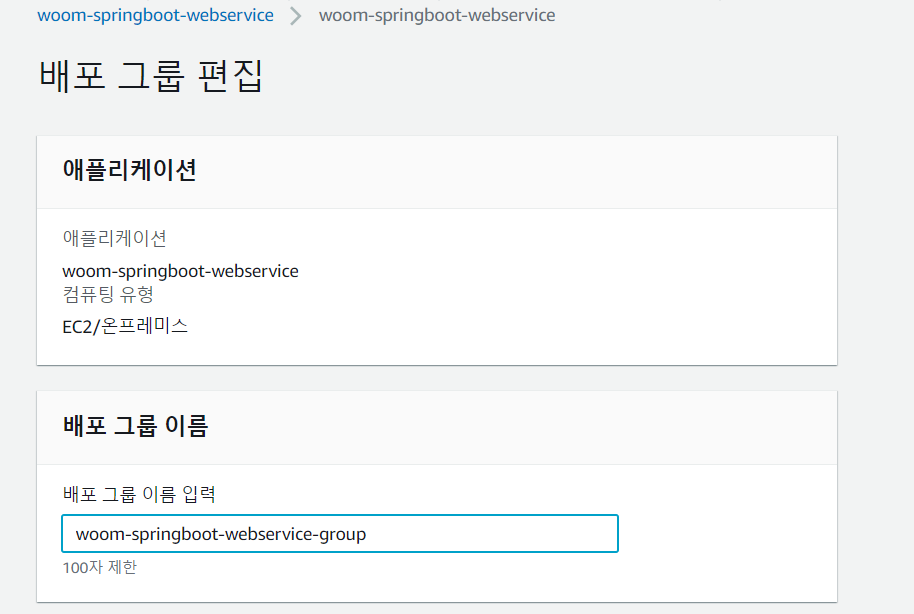 No Deployment Group found for name : woom-springboot-webservice-group